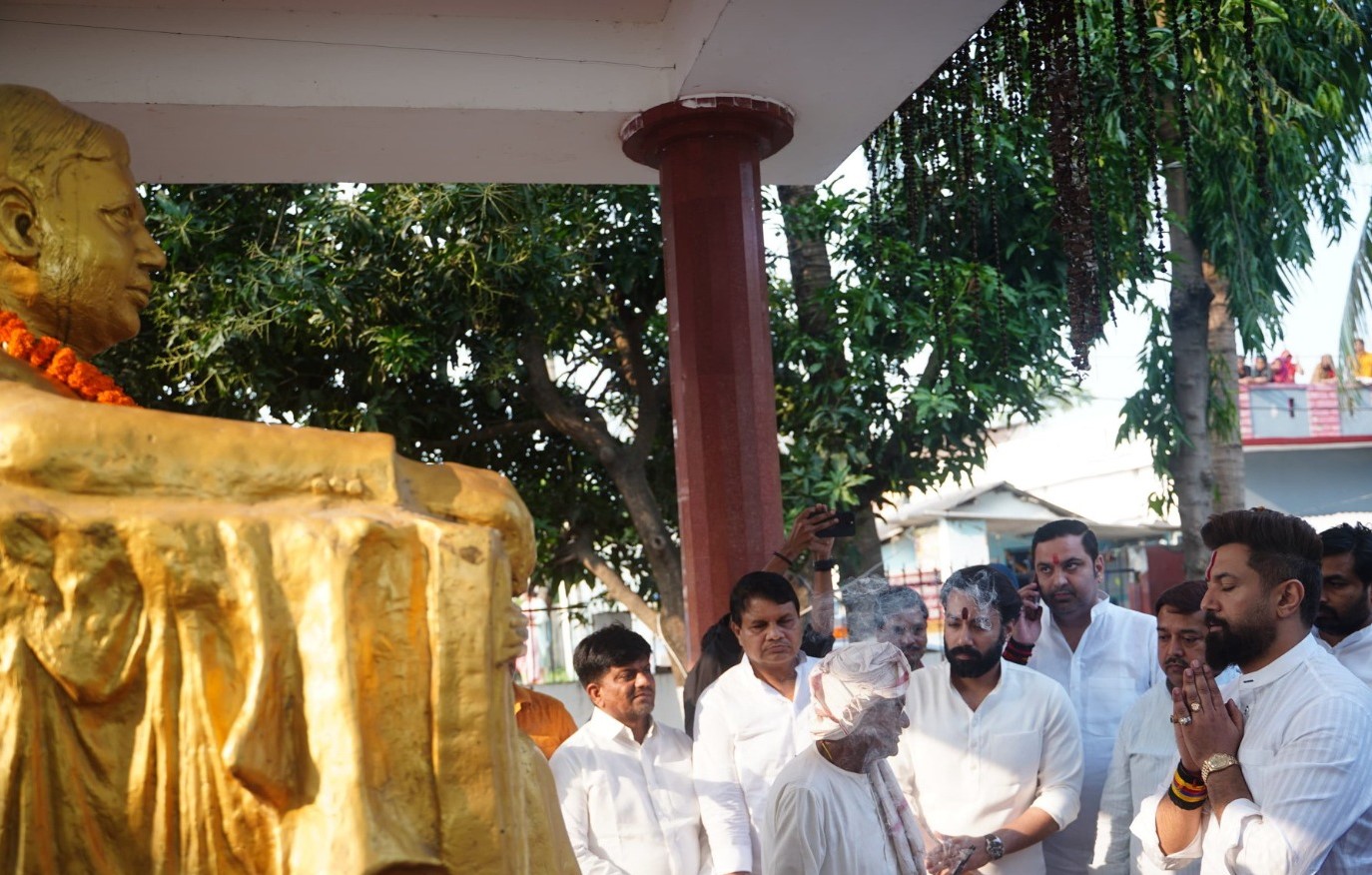 केंद्रीय मंत्री चिराग पासवान खगड़िया के अलौली प्रखंड के शहरबन्नी स्थित अपने पैतृक आवास पहुंचे। इस दौरान की एक तस्वीर चर्चा में है। दरअसल, आवास पर पूर्व केंद्रीय मंत्री पशुपति कुमार पारस भी मौजूद थे। चाचा पारस को देख चिराग ने उनका पैर छूकर आशीर्वाद लिया। इसके बाद दोनों के बीच काफी देर तक बातचीत भी हुई, हालांकि चाचा-भतीजे के बीच क्या बातें हुईं, यह स्पष्ट नहीं हो पाया। चाचा पशुपति कुमार पारस ने भतीजे चिराग पासवान को आशीर्वाद दिया। इसके बाद चिराग ने अपने छोटे भाई प्रिंस राज से भी मुलाकात की। दोनों भाइयों ने एक-दूसरे को गले लगाया। इस दौरान आवास पर खगड़िया के सांसद राजेश वर्मा और पार्टी कार्यकर्ताओं की भारी भीड़ मौजूद रही। सभी कार्यकर्ताओं ने जमकर नारे लगाए। जानकारी के मुताबिक, चिराग अपने दिवंगत चाचा अर्जुन पासवान को श्रद्धांजलि देने पहुंचे थे।