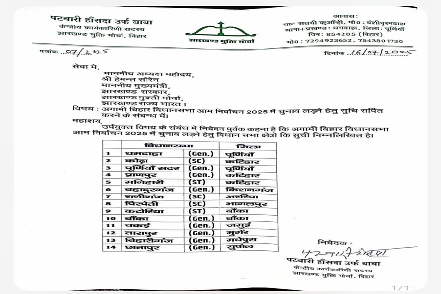 यहां मालूम हो कि बिहार विधानसभा चुनाव को लेकर निर्वाचन आयोग के घोषणा की उल्टी गिनती शुरू हो चुकी है। दुर्गा पूजा समाप्त होते-होते किसी भी समय बिहार में विधानसभा चुनाव की घोषणा हो सकती है। इसको लेकर बिहार में इंडिया और एनडीए गठबंधन के दल चुनाव प्रचार में लगे हैं। चुनावी बयार को धार देने में जुटे हैं। इनमें भाजपा, जदयू, राजद, कांग्रेस समेत अन्य छोटी-छोटी पार्टियां भी शामिल है। इसे देखते हुए अब उम्मीद की जा रही है कि दशहरा के बाद किसी भी समय इंडिया और एनडीए गठबंधन अपनी अपनी सीटों का बंटवारा और प्रत्याशियों की घोषणा कर सकते हैं। इस लिहाज से झामुमो भी अपनी दावेदारी को बल देने में जुट गया है। मालूम हो कि झारखंड से भी झामुमो के कई नेताओं ने 12-14 सीटों पर चुनाव लड़ने की मांग कर चुके हैं।